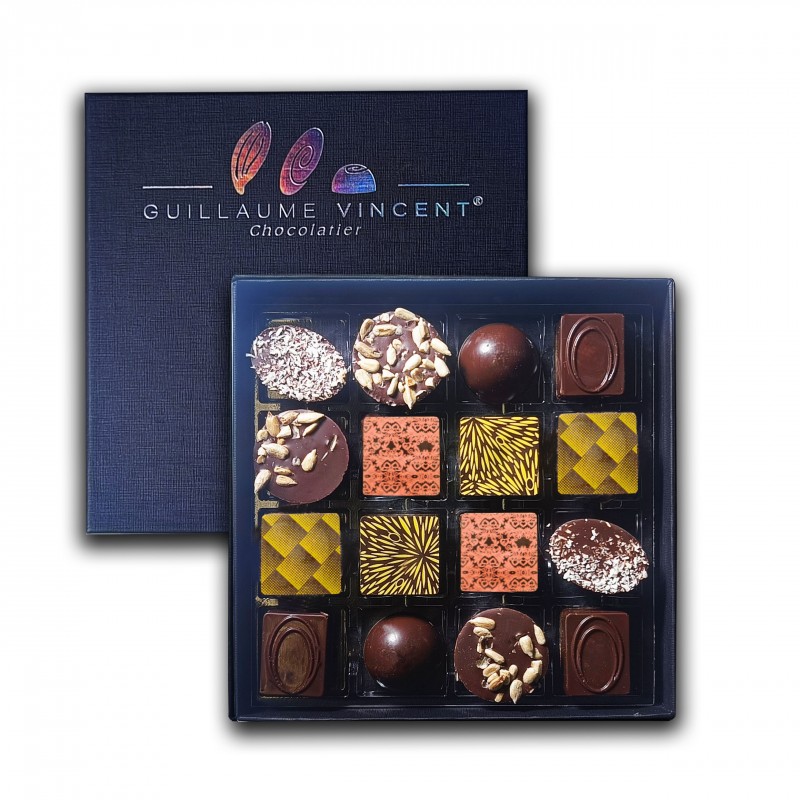 Coffret "Tradition" - Assortiment de 16 pralinés et ganaches (enrobés de chocolat noir)
