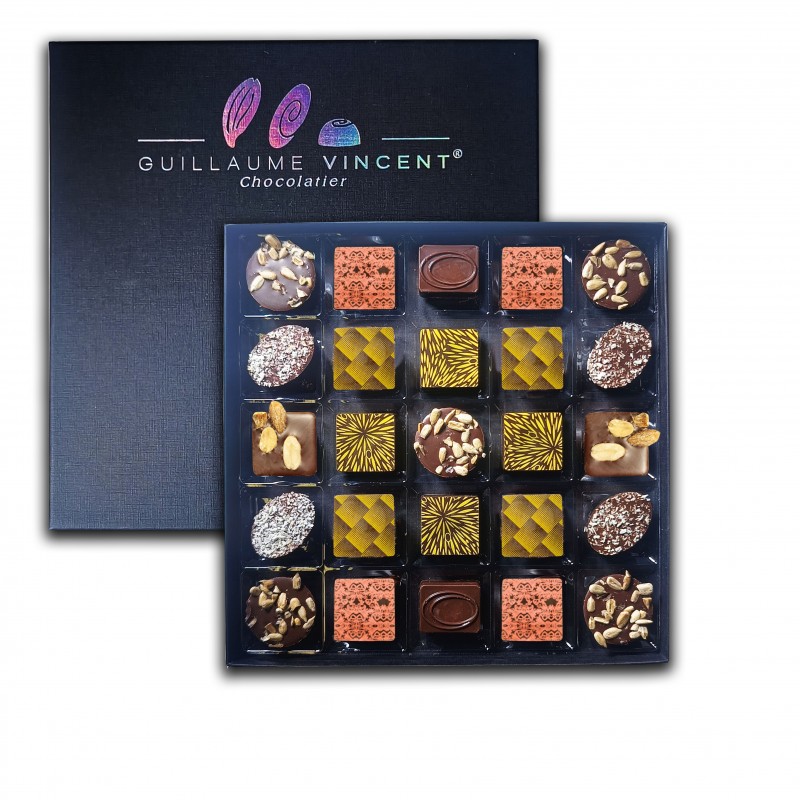 Coffret "Tradition" - Assortiment de 25 pralinés et ganaches enrobés de chocolat noir