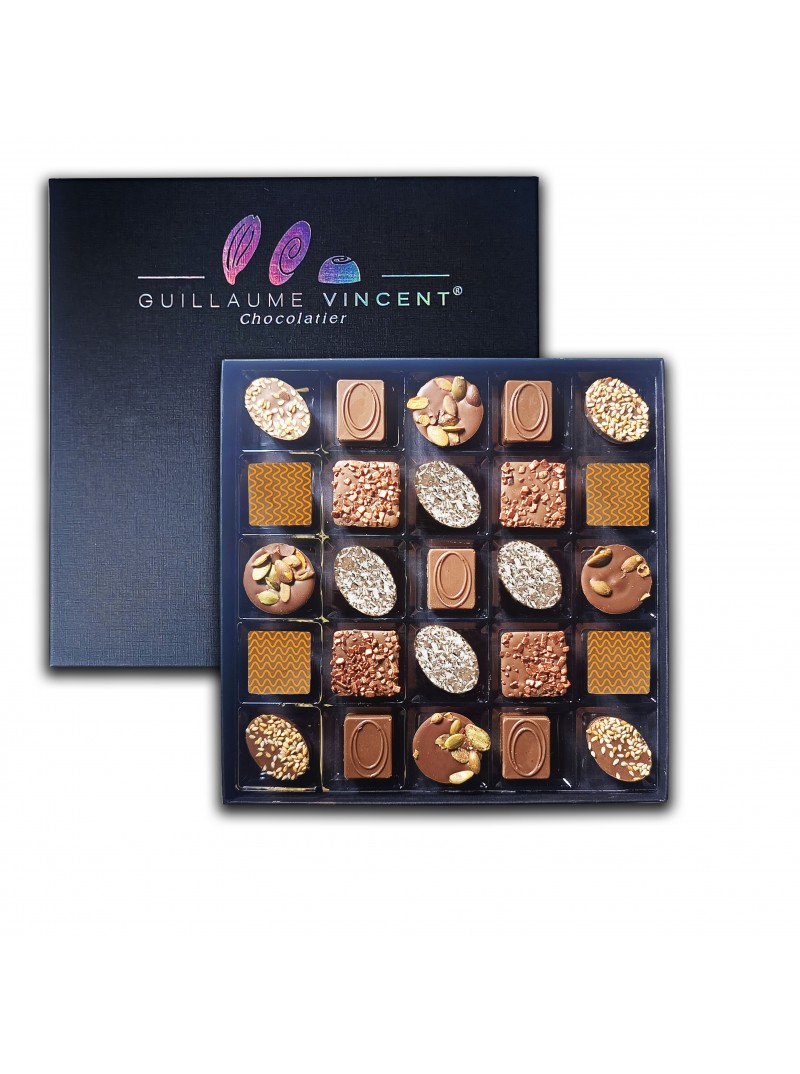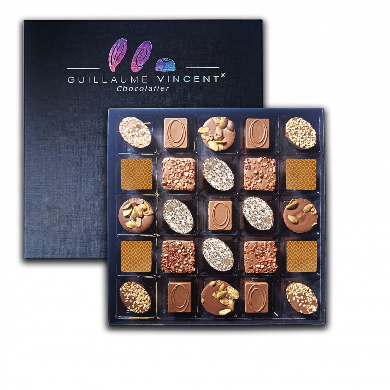 Coffret "Tradition" - Assortiment de 25 pralinés et ganaches (enrobés de chocolat au lait)